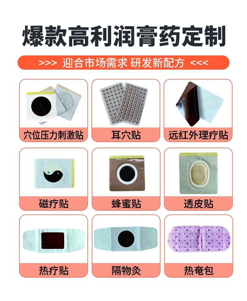 | 補(bǔ)充說明 | 注意事項(xiàng):1市場大:膏藥的空白市場很大, 消費(fèi)群體廣大。每個(gè)人都可能用到膏藥,并且有嚴(yán)格的區(qū)域保護(hù)。 2經(jīng)營活:可以自己在電商、微信上賣,可以做直播、短視頻,也可以和各大醫(yī)院、藥店、美容店合作。 3品種多:膏藥有:骨科、兒科、婦科、癥狀類等;瘖y品有面膜、精華液、水乳霜、彩妝、套盒、洗沐護(hù)等。 4操作易:專業(yè)的客服團(tuán)隊(duì)每月定期回訪,根據(jù)不同市場提供指導(dǎo)、培訓(xùn)、廣告、促銷活動(dòng)支持! 6產(chǎn)品好:20年膏藥生產(chǎn)經(jīng)驗(yàn),膏藥效果經(jīng)得住考驗(yàn),終端客戶好評如潮! 貯藏:干燥陰涼 禁忌:無 保質(zhì)期:兩年 備注:1、優(yōu)質(zhì)服務(wù):專業(yè)OEM服務(wù)團(tuán)隊(duì)一對一服務(wù),從設(shè)計(jì)到出貨全程專人跟進(jìn)。 2、出貨迅速:包裝定稿,專業(yè)生產(chǎn)團(tuán)隊(duì)可在10—15天內(nèi)交付發(fā)貨。 3、質(zhì)量**:從生產(chǎn)至出廠五道質(zhì)檢嚴(yán)格把關(guān),全自動(dòng)四邊封口機(jī)器密封性更好,產(chǎn)品更美觀 4、權(quán)威認(rèn)證:國家FDA認(rèn)證的一類醫(yī)療器械文號(hào),藥監(jiān)局可查,十萬級(jí)凈化標(biāo)準(zhǔn)生產(chǎn)車間,品質(zhì)有**。 5、經(jīng)驗(yàn)豐富:20年生產(chǎn)加工經(jīng)驗(yàn),已為上百個(gè)品牌提供服務(wù),產(chǎn)品已出口多個(gè)國家和地區(qū)。 6、產(chǎn)量充足:現(xiàn)代化生產(chǎn)車間、進(jìn)口全自動(dòng)生產(chǎn)線,日產(chǎn)量100萬片。 7、品類齊全:300多款成熟配方(妝字號(hào)、械字號(hào)、消字號(hào))免費(fèi)打樣 |