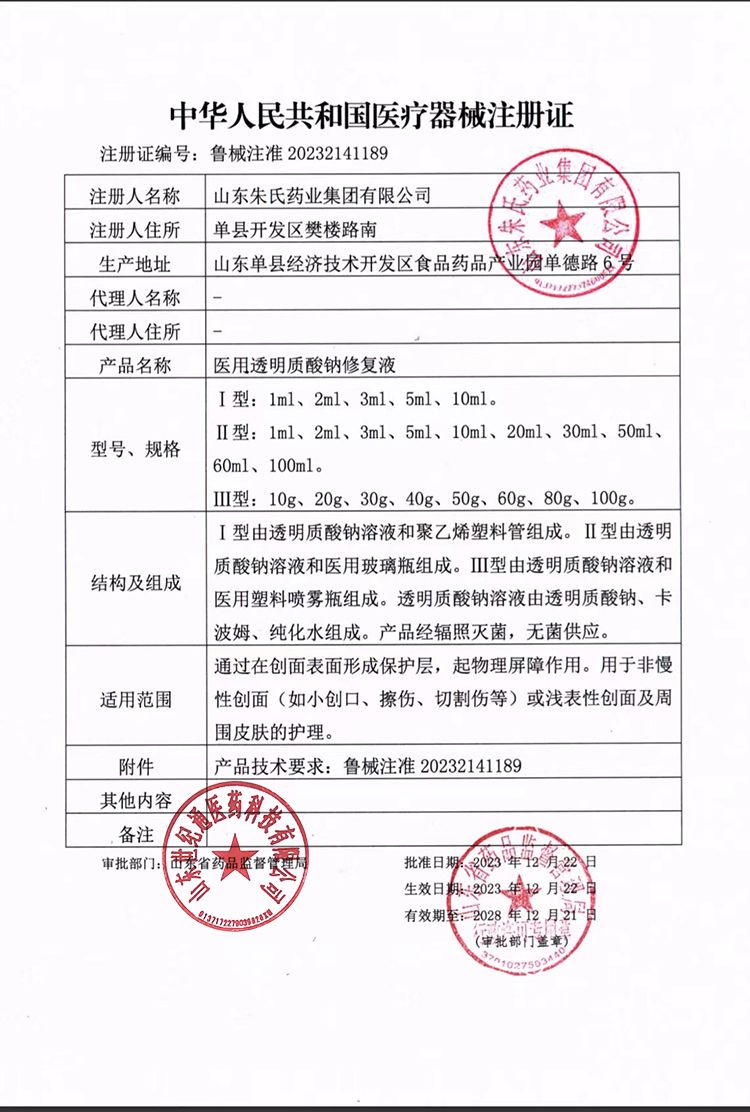 | 產(chǎn)品名稱 | 醫(yī)用透明質(zhì)酸鈉修復液 |