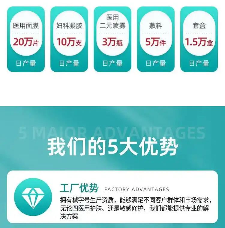 | 補充說明 | 貯藏:干燥陰涼 禁忌:無 保質(zhì)期:兩年 備注:1、優(yōu)質(zhì)服務:專業(yè)OEM服務團隊一對一服務,從設計到出貨全程專人跟進。 2、出貨迅速:包裝定稿,專業(yè)生產(chǎn)團隊可在10—15天內(nèi)交付發(fā)貨。 3、質(zhì)量**:從生產(chǎn)至出廠五道質(zhì)檢嚴格把關,全自動四邊封口機器密封性更好,產(chǎn)品更美觀 4、權威認證:國家FDA認證的一類醫(yī)療器械文號,藥監(jiān)局可查,十萬級凈化標準生產(chǎn)車間,品質(zhì)有**。 5、經(jīng)驗豐富:20年生產(chǎn)加工經(jīng)驗,已為上百個品牌提供服務,產(chǎn)品已出口多個國家和地區(qū)。 6、產(chǎn)量充足:現(xiàn)代化生產(chǎn)車間、進口全自動生產(chǎn)線,日產(chǎn)量100萬片。 7、品類齊全:300多款成熟配方(妝字號、械字號、消字號)免費打樣 |