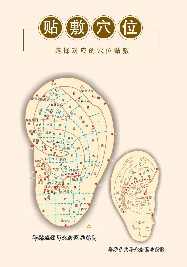 | 作用機理 | 耳穴貼壓療法,是耳穴療法中常見的一種,也是中醫(yī)特色療法之一,耳穴貼壓療法是使用藥物、磁珠等圓形物質(zhì)(常用的為王不留行籽)貼敷在耳穴上而達到目的的一種療法。 |