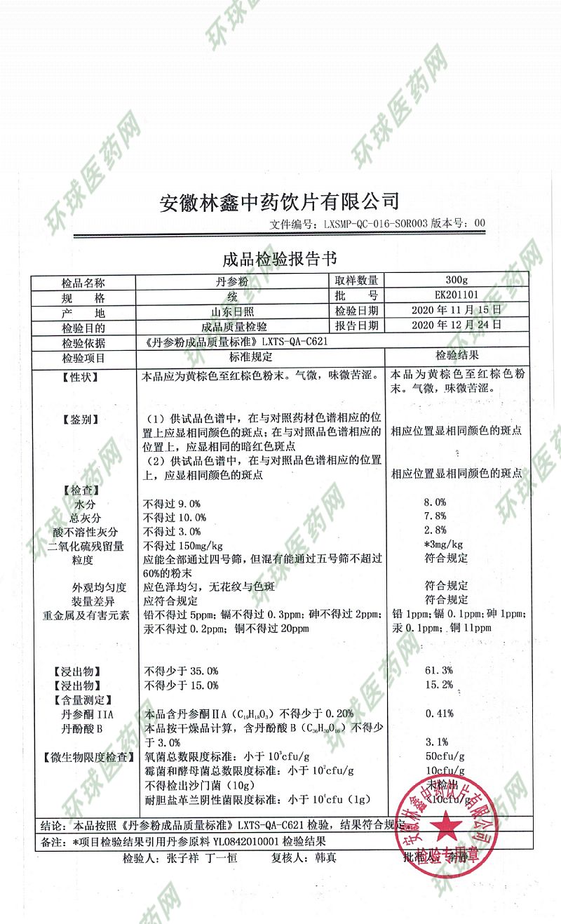 生產(chǎn)企業(yè): 安徽林鑫中藥飲片有限公司
