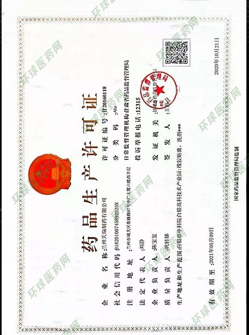 生產(chǎn)企業(yè): 蘭州天瑞制藥有限公司