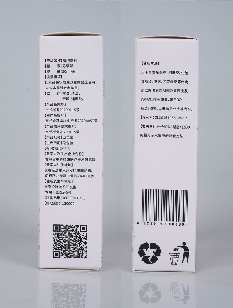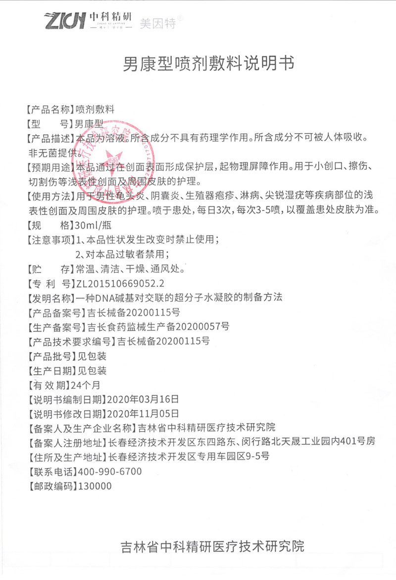 | 產(chǎn)品名稱 | 美因特男康型噴劑敷料 |