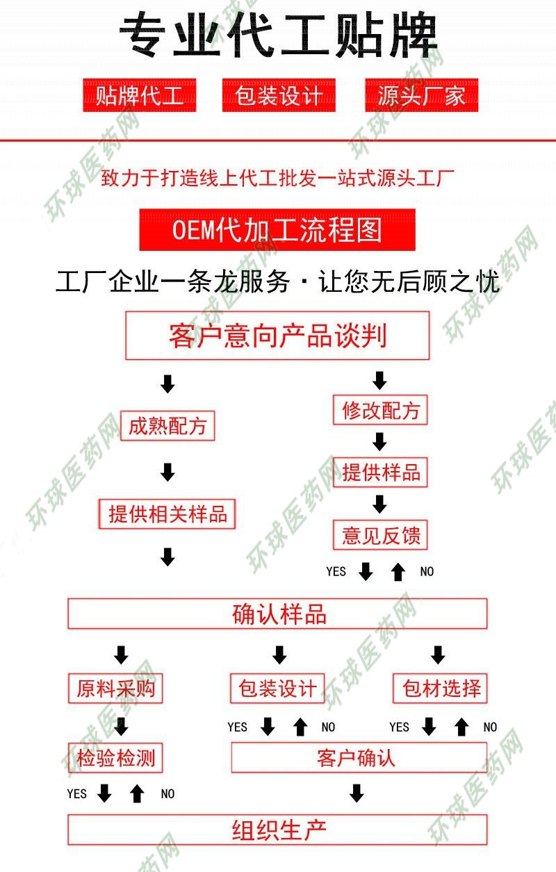 - 你的品牌,我們的專業(yè)技術(shù)按您的個性化方式要求,對您的產(chǎn)品研發(fā)、生產(chǎn)、加工專屬您自己品牌的產(chǎn)品,免去您建廠、研發(fā)、生產(chǎn)投資風(fēng)險。