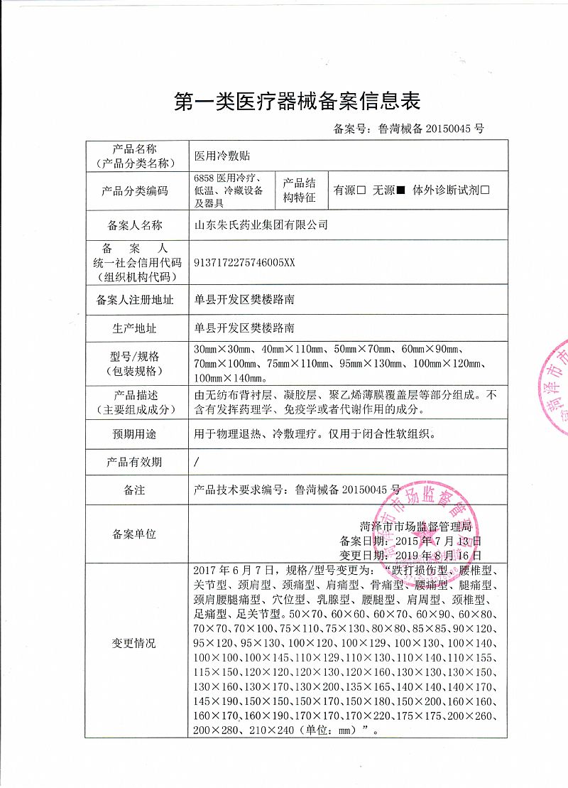 | 產(chǎn)品用途 | 1、適用關(guān)節(jié)、頸椎、腰椎、肩周、跌打損傷等部位閉合性軟組織冷敷,物理退熱。 2、由降溫?zé)o知和**形式的外套及固定器具組成。降溫物質(zhì)不應(yīng)含有發(fā)揮藥理學(xué)、免疫學(xué)或者代謝作用的成分 |
