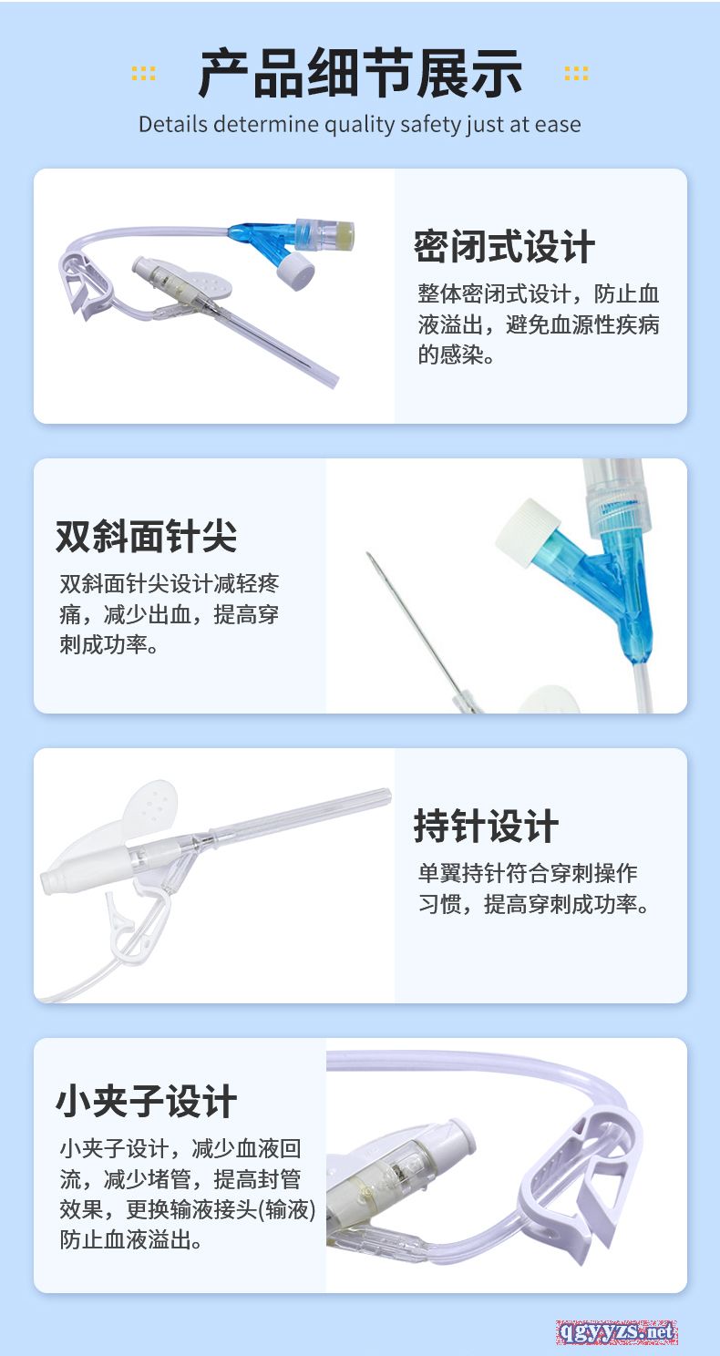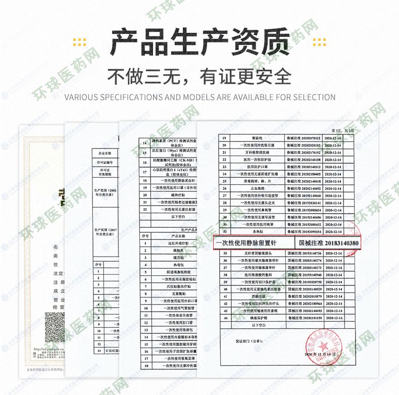 | 補充說明 | 產(chǎn)品名稱:一次性使用靜脈留置針 產(chǎn)品規(guī)格:Y型,18G、20G、22G、24G、26G 醫(yī)療器械產(chǎn)品注冊證證號:國械注準20183140380 生產(chǎn)企業(yè)許可證號:魯食藥監(jiān)械生產(chǎn)許20140053號 適用范圍: 本產(chǎn)品供插入人體外周血管靜脈系統(tǒng)連續(xù)輸液用。 主要結構與性能:Y型留置針主要由不銹鋼針管、導管(套管)、金屬楔、導管座(Y型)、隔離塞、針管座、長導管(連接管)、長導管連接座、肝素帽、 螺旋帽、滑動夾緊板、針管保護套組成。 產(chǎn)品特點: 1.導管柔軟,不易損傷血管**輸液時的** ;2.避免每天穿刺血管,減輕痛苦,保護血管 ;3.使病人在輸液時感覺更為舒適 ;4.提高工作效率 ;5.提高護理質(zhì)量 適用范圍::1.腫瘤科 2.兒科 3.神經(jīng)內(nèi)外科 4.普通病房 5.CT室 6.門急診 預期用途:臨床用于留置病人靜脈進行輸液 產(chǎn)品部件:蝶翼狀、肝素帽、滑動夾緊板 |