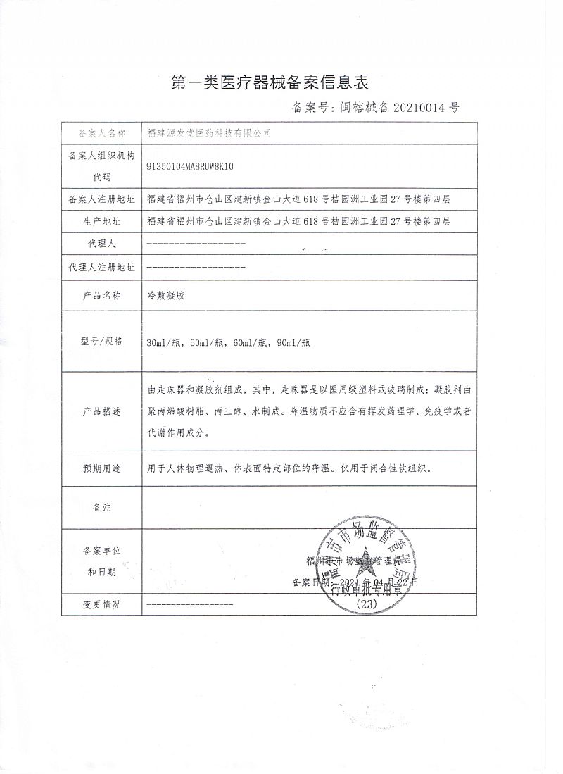 | 補(bǔ)充說明 | 福建源發(fā)堂醫(yī)藥科有限公司前身為江西源發(fā)藥店,成立至今已近百年歷史。醫(yī)保產(chǎn)品醫(yī)用退熱貼(專利號:ZL 2021 3 0527751.X)、退熱走珠(冷敷凝膠)、退熱雙寶為公司拳頭產(chǎn)品,具有退燒迅速,冷敷持續(xù)性長,產(chǎn)品可靠性高、有效性強(qiáng)的特點。 |