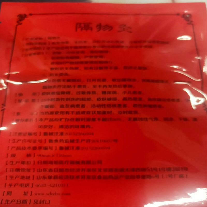 | 使用方法 | 打開包裝袋,取出隔物灸后撕去兩邊膠貼保護(hù)紙,將隔物灸貼在人體相關(guān)穴位上即可。對(duì)膠貼過敏者,可將隔物灸正面對(duì)準(zhǔn)穴位,反貼在緊身衣上即可。 |