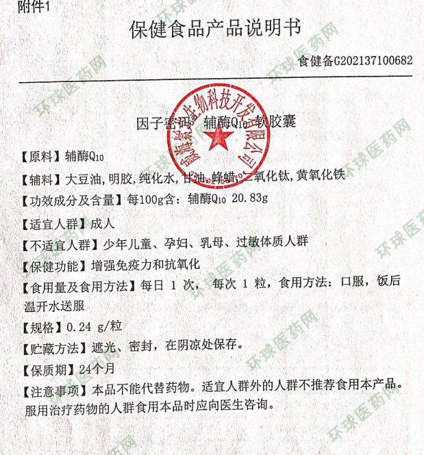 產(chǎn)品名稱(chēng): 因子密碼®;輔酶Q10軟膠囊
