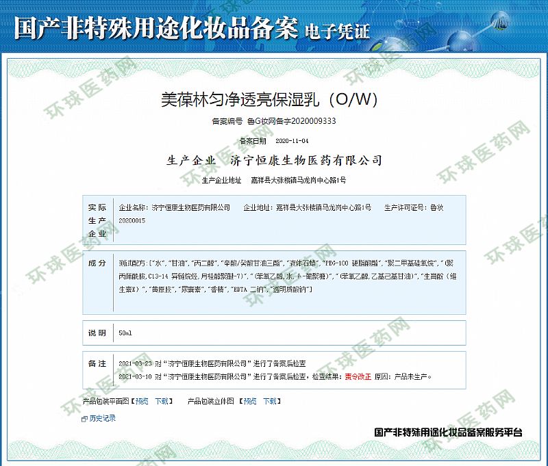 批準(zhǔn)文號(hào): 魯妝20200015 【驗(yàn)證真?zhèn)?/a>】