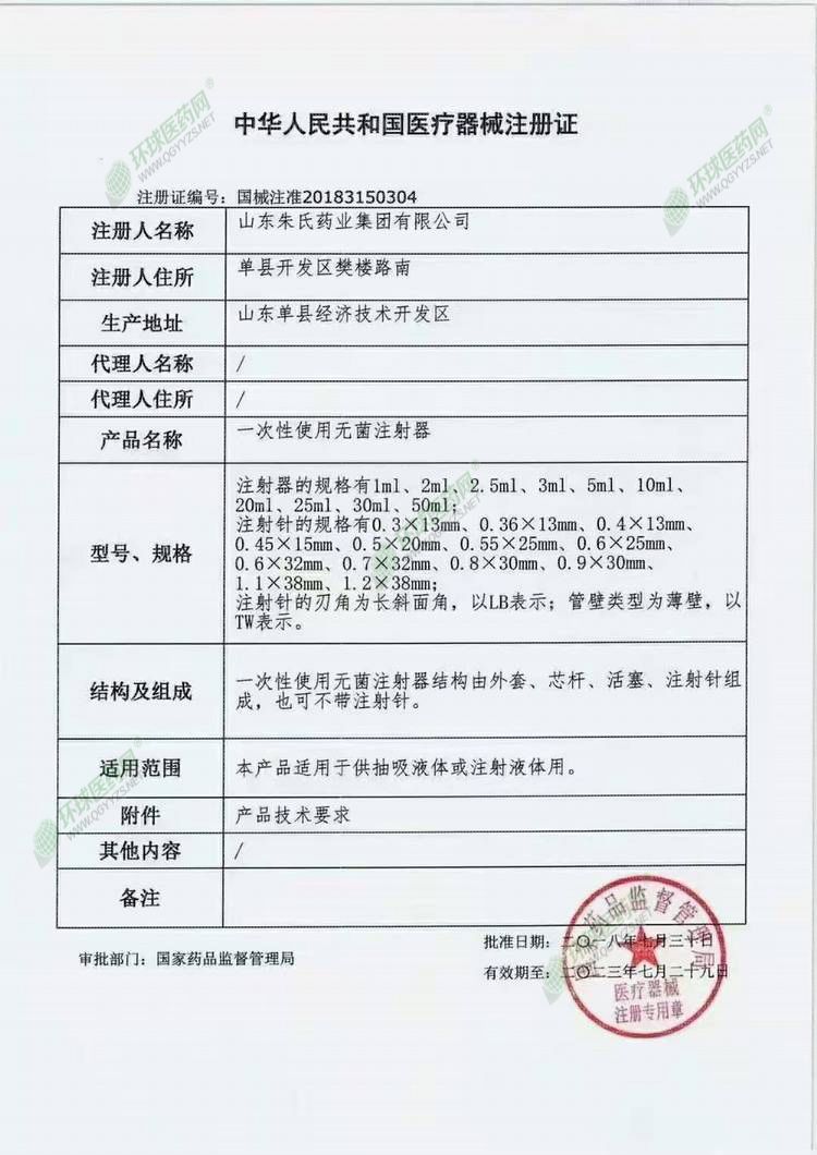 產(chǎn)品名稱: 一次性使用無(wú)菌注射器10毫升