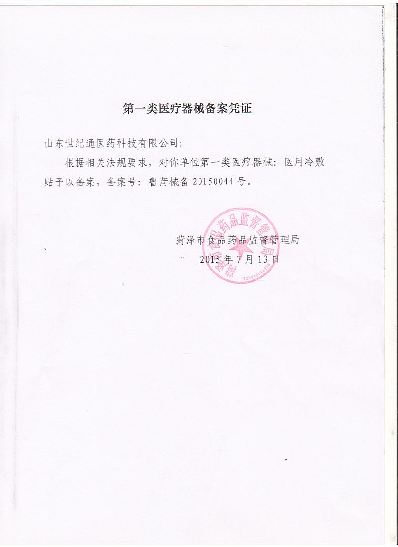 | 補(bǔ)充說明 | 山東世紀(jì)通醫(yī)藥科技有限公司一家集貼膏、醫(yī)療器械、化妝品、保健食品、生物試劑新藥研發(fā)生產(chǎn)與銷售、房產(chǎn)開發(fā)、物流配送、企業(yè)培訓(xùn)為一體的大型綜合型企業(yè)集團(tuán)。質(zhì)量可靠,資質(zhì)齊全,一站式醫(yī)療器械OEM貼牌代工,承接批發(fā)代理! |