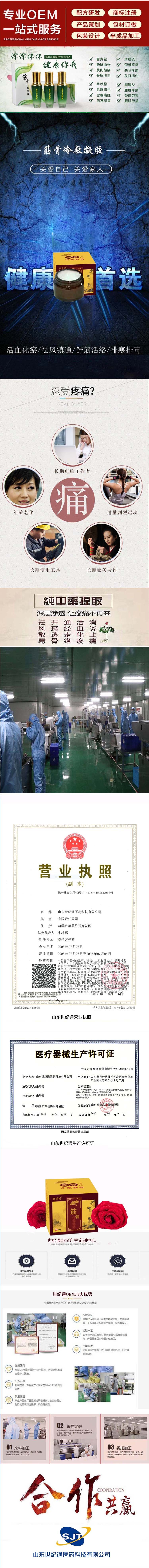 | 補(bǔ)充說(shuō)明 | 可以生產(chǎn)代加工貼牌 提供一條龍服務(wù) 如果在我們公司做貼膏oem貼牌公司可以提供文號(hào)的使用 筋骨冷敷凝膠可以和骨科貼膏貼劑配合使用,且都械字號(hào)產(chǎn)品,可以走醫(yī)院、診所、藥店等渠道,另外公司已經(jīng)辦理廣告審查表,可以操作電商渠道、微商渠道等。銷路廣,需求量大。 中藥風(fēng)濕骨病軟膏生產(chǎn)加工廠家,消腫止疼膏oem貼牌加工定制。 |