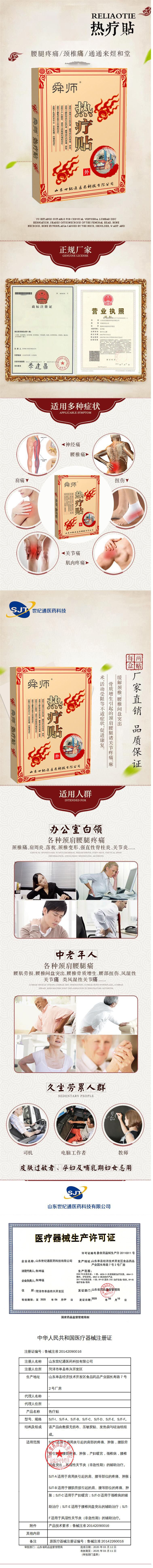 | 產(chǎn)品用途 | SJT-I適用于肩周炎引起的肩部的疼痛、腫脹,腰肌勞損引起的腰部疼痛、腫脹,產(chǎn)婦暖宮,頸椎病,腰椎間盤突出,風(fēng)濕性關(guān)節(jié)炎(非急性期)的輔助治療。SJT-A適用于肩周炎引起的肩、腰等部位的疼痛、腫脹;SJT-B適用于腰肌勞損引起的肩、腰等部位的疼痛、腫脹;SJT-C適用于產(chǎn)婦暖宮;SJT-D適用于頸椎病的輔助治療;SJT-E適用于腰椎間盤突出的輔助治療;SJT-F適用于風(fēng)濕性關(guān)節(jié)炎(非急性期)的輔助治療。 |