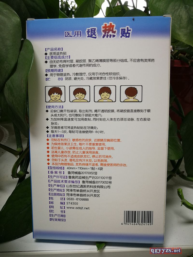 | 使用方法 | 1、沿缺口撕開包裝袋,取出貼劑,揭開透明膠膜,將凝膠面直接貼敷于額頭或太陽穴,也可敷貼于頸部大椎穴。 2、為加快降溫速度可加用數(shù)貼,同時貼在人體左右勁總動脈、左右股動脈處。 3、牙痛患者可將退熱貼貼在牙痛處。 4、每天1-3次,每貼可持續(xù)使用6-8小時 |