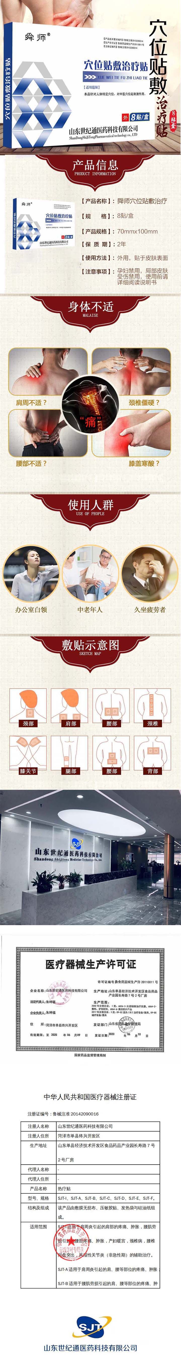 | 補(bǔ)充說明 | 山東世紀(jì)通醫(yī)藥科技有限公司專業(yè)生產(chǎn)膏藥貼劑十幾年,穴位貼敷貼OEM貼牌代工在全國業(yè)界積淀了良好的聲譽(yù),朱氏人本著“誠信百年,創(chuàng)新百年”的理念服務(wù)于有志于全民大健康綠色療法的企業(yè)和個(gè)人,舜師穴位貼敷貼OEM專線 龐龍 18888366188,歡迎您來廠家參觀,見證世紀(jì)通的實(shí)力。 |