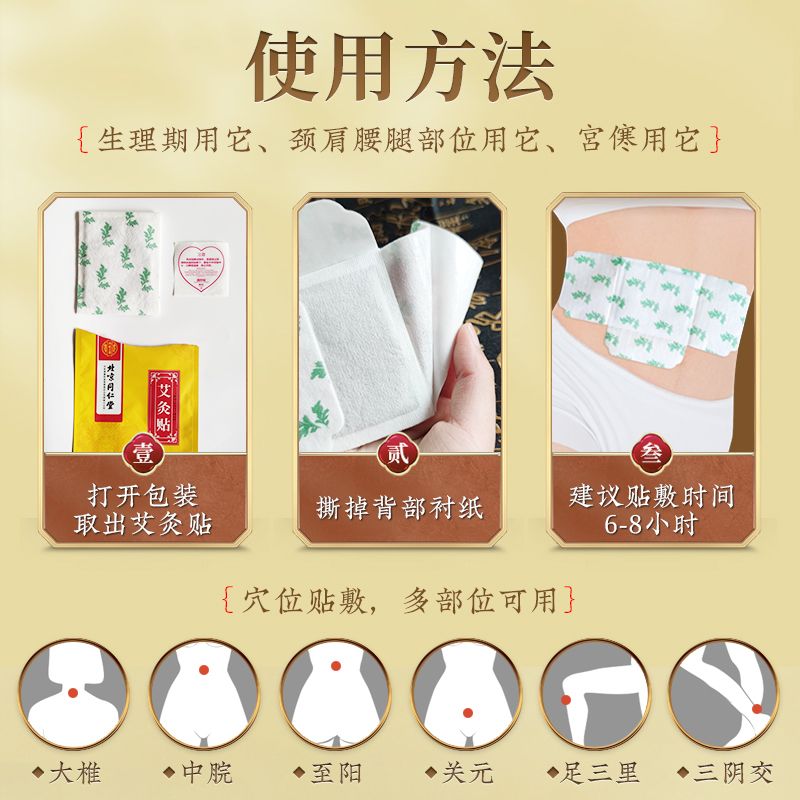 | 使用方法 | 1、打開包裝取出艾灸貼 2、撕掉背部襯紙 3、建議貼敷時間艾灸貼6-8小時 |