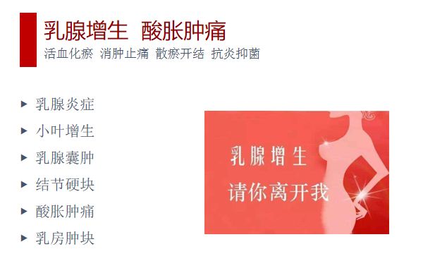 | 產(chǎn)品賣點 | 采用古中醫(yī)組方,疏通人體經(jīng)絡,中醫(yī)藥靶向給藥技術,實現(xiàn)對乳腺組織的病變或身體經(jīng)絡淤堵引起的胸部不適進行調理和乳腺日常護理。 |