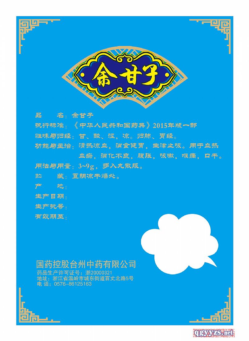 生產(chǎn)企業(yè): 國藥控股臺州中藥有限公司