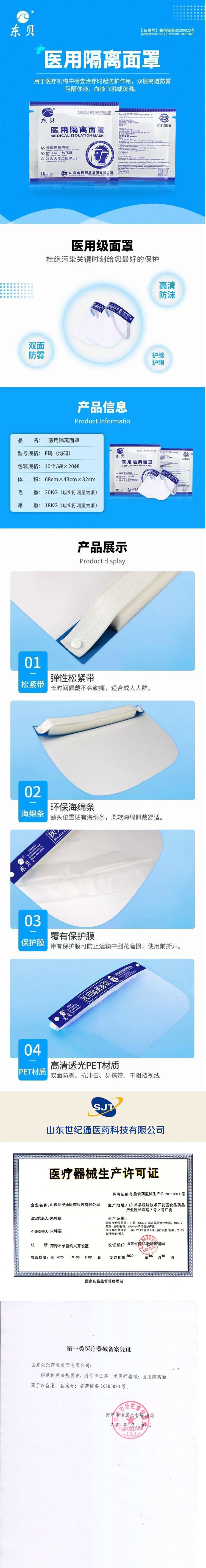 | 產(chǎn)品名稱 | 山東世紀通醫(yī)用隔離面罩 |