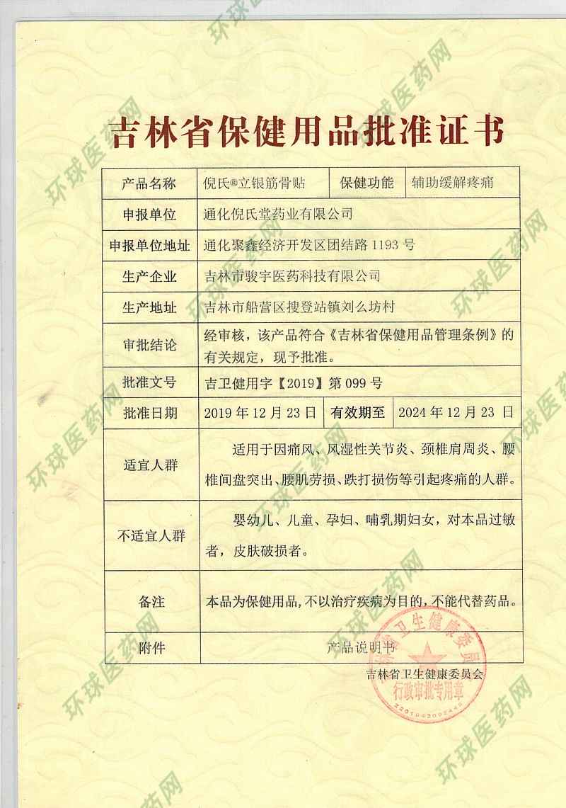 批準(zhǔn)文號(hào): 吉衛(wèi)健用字2019第099號(hào) 【驗(yàn)證真?zhèn)?/a>】