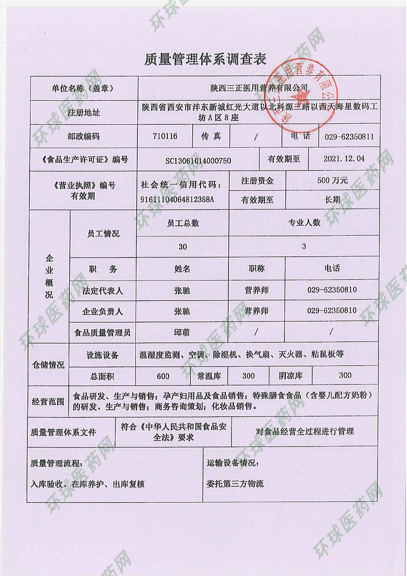 生產(chǎn)企業(yè): 陜西三正醫(yī)用營養(yǎng)有限公司