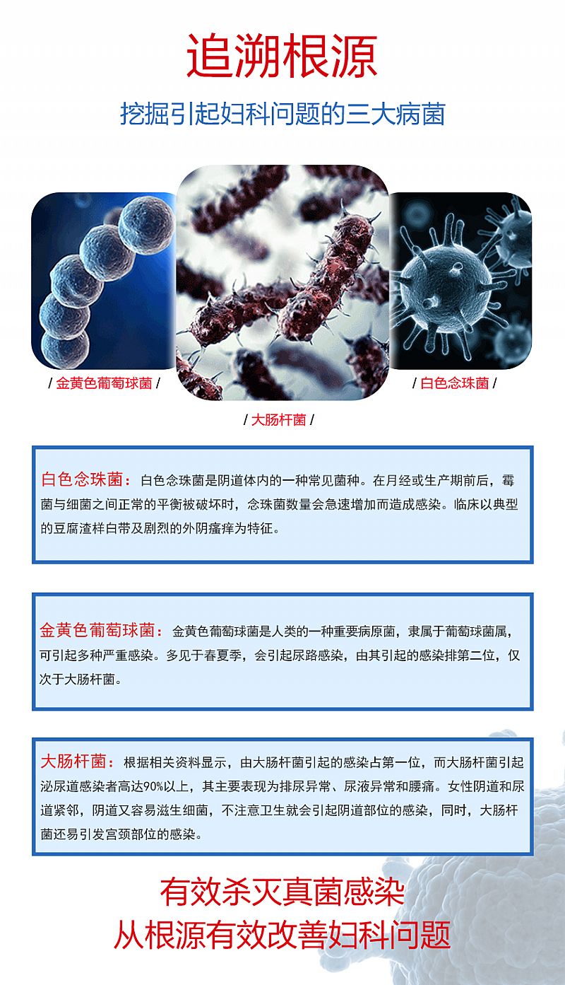 | 產(chǎn)品用途 | 本對于細菌、病毒具有強力的抑制作用,適用于各類致病微生物引起**癥狀表現(xiàn)的婦科炎癥和陰道感染, |