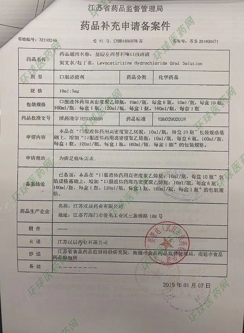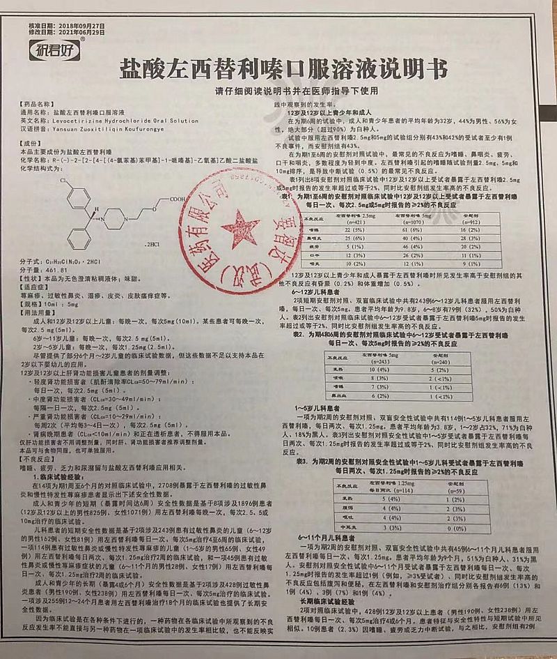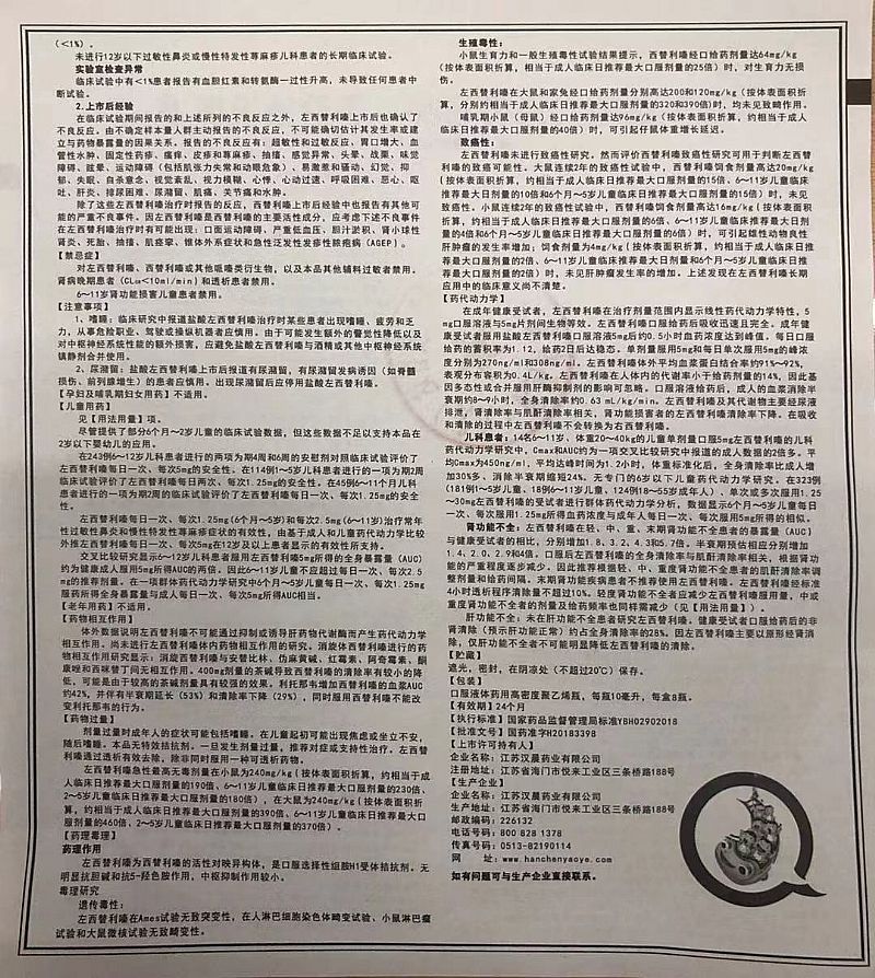 | 補充說明 | 鹽酸左西替利嗪口服溶液是一個抗組胺藥物,它能明顯的阻斷過敏遞質(zhì)的產(chǎn)生,而且沒有抗膽堿、抗5-羥色胺的作用,比如嗜睡、頭暈等,這些副作用非常少。 |