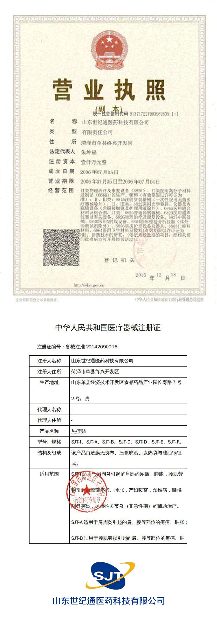 | 補充說明 | 山東世紀(jì)通醫(yī)藥科技有限公司有幾十種一類、二類械字號文號,現(xiàn)有產(chǎn)品也有上百種,合作客戶也是遍布全國各地,膏藥貼劑、保健食品、高端化妝品系列全國招商,我們?yōu)榱藬U大市場,與更多客戶合作,也希望有新型外用產(chǎn)品規(guī)格定制加工要求、貼牌加工的客戶聯(lián)系龐龍:18888366188。我們給您專業(yè)的產(chǎn)品和服務(wù)。 |
