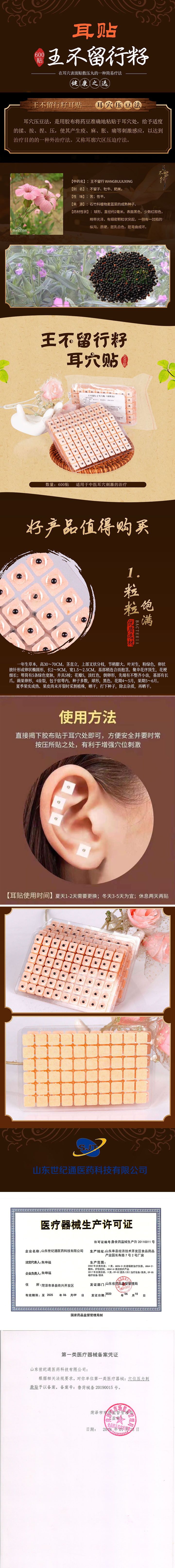 | 補(bǔ)充說明 | 王不留行籽是植物麥藍(lán)菜的成熟種子。多為,亦有栽培。夏季果實(shí)成熟、果皮尚未開裂時(shí)采割植株,曬干,打下種子,除去雜質(zhì),曬干生用或炒用,為王不留行籽;一般中醫(yī)針灸中用作耳針療法的材料,制成品為預(yù)裁為約5mm5mm大小的膠布,中間粘一粒王不留行籽,貼于耳朵,壓迫相應(yīng)穴位。 王不留行耳貼 1.首先,用酒精消毒耳朵后貼上王不留行,按壓時(shí)耳朵有酸、麻、脹、痛感,如沒有上述感覺,可把磁珠向上、向下、向左或向右稍加移動(dòng),找到敏感點(diǎn),再固定按壓,從而刺激經(jīng)絡(luò)穴位,達(dá)到治果。 2.將耳穴貼貼在治療點(diǎn)上,每次先做一邊耳朵,每天有規(guī)律用力適度的按壓刺激穴位,約3天后換另一邊耳朵繼續(xù)按壓,交替使用,以3-7天為一個(gè)療程,建議多3個(gè)療程為限,須休息一星期。 |