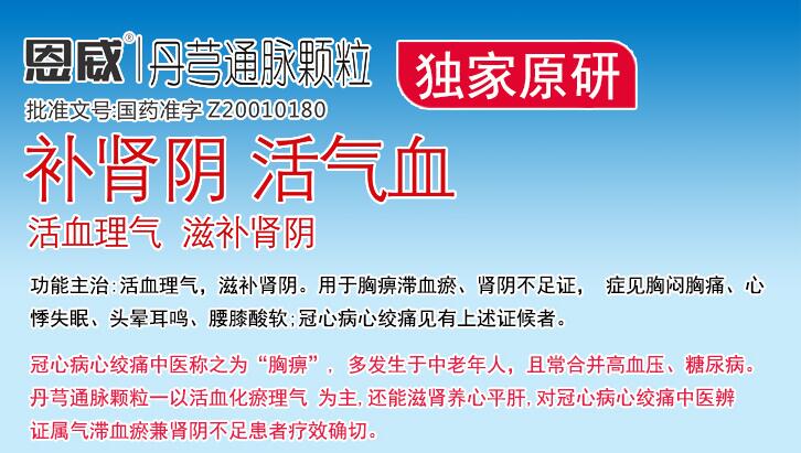 | 功能主治 | 活血理氣,滋補(bǔ)腎陰。用于冠心病心絞痛氣滯血瘀兼腎陰不足證,癥見胸悶、胸痛、心悸、頭暈、失眠、耳鳴、腰膝酸軟。 |