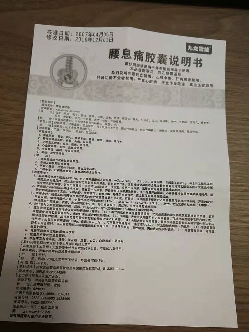 | 產(chǎn)品賣點(diǎn) | 中成藥,舒筋活絡(luò)、祛瘀止痛、活血祛風(fēng),消炎止痛,可將局部炎癥物質(zhì)排出,使髓核完全復(fù)位,**消除病灶疼痛麻木感。主治風(fēng)濕性關(guān)節(jié)炎、肥大性腰椎炎、肥大性胸椎炎、頸椎炎、坐骨神經(jīng)痛,腰肌勞勛。腰椎頸椎疾病,既能緩解神經(jīng)緊張,又能修復(fù)腰椎扭傷,對(duì)腰椎間盤有很好的療效, |