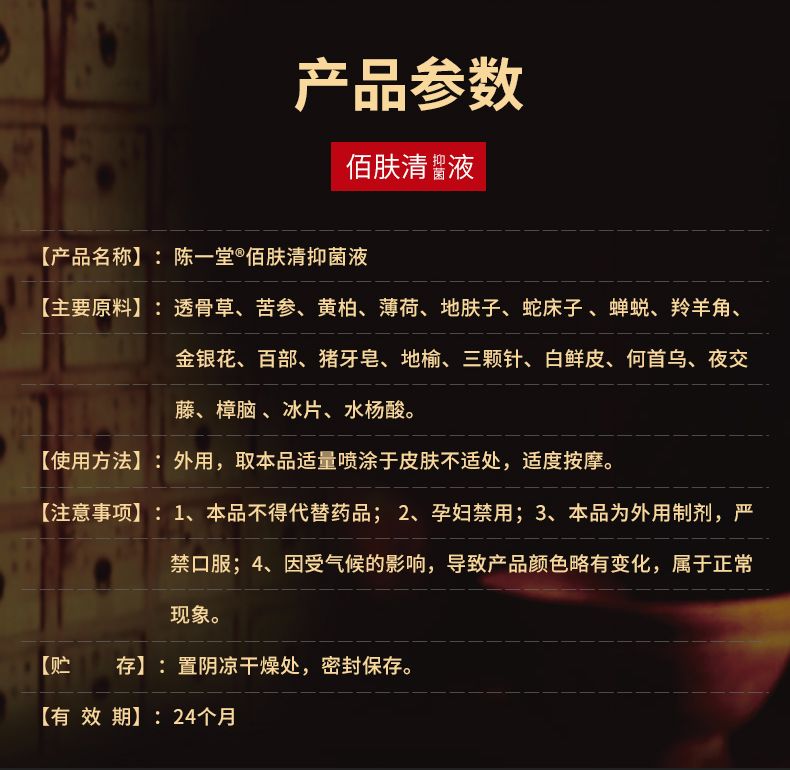 產(chǎn)品名稱: 陳一堂佰膚清抑菌液