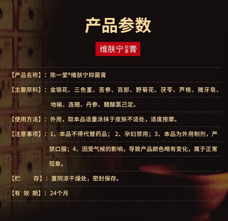 | 產(chǎn)品名稱 | 陳一堂維膚寧抑菌膏 |