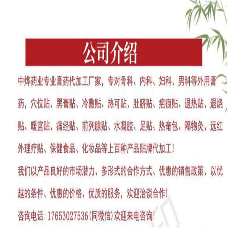 | 使用方法 | 風(fēng)濕類(lèi)風(fēng)濕關(guān)節(jié)炎特效膏藥代加工|遠(yuǎn)紅外磁療貼系列加工系列使用本品時(shí),先清潔患部皮膚,揭去防粘膜將本品直接貼于患處,將膠膜緊貼皮膚并壓緊周邊,使粘貼材料貼實(shí)。2-3日更換一次 |