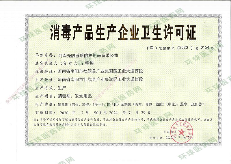 - 醫(yī)療器械生產(chǎn)廠(chǎng)家,河南省醫(yī)療器械龍頭企業(yè),目前公司主營(yíng)產(chǎn)品有一次性醫(yī)用口罩、醫(yī)用外科口罩、醫(yī)用防護(hù)口罩、民用KN95、洗手液、消毒液等,目前產(chǎn)品已覆蓋全國(guó)20多個(gè)省,出口近30個(gè)國(guó)家和地區(qū),資質(zhì)齊全,價(jià)格實(shí)惠,工廠(chǎng)直供,期待與貴公司達(dá)成合作,謝謝。