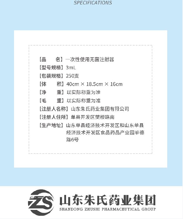 | 產(chǎn)品規(guī)格 | 1ml、2ml、2.5ml、3ml、5ml、10ml、20ml、25ml、30ml、50ml;注射針 |