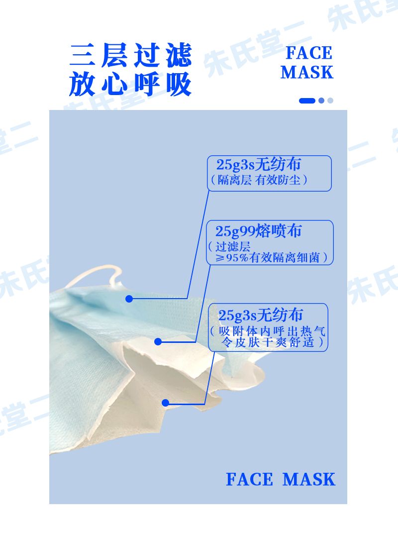 | 產(chǎn)品用途 | 朱氏藥業(yè)一次性醫(yī)用外科口罩,一般用于醫(yī)療門診、實(shí)驗(yàn)室、手術(shù)室等高要求環(huán)境,為醫(yī)護(hù)人員工作時(shí)所佩戴的口罩。系數(shù)相對(duì)較高,對(duì)于細(xì)菌、病毒的抵抗能力較強(qiáng)。 |