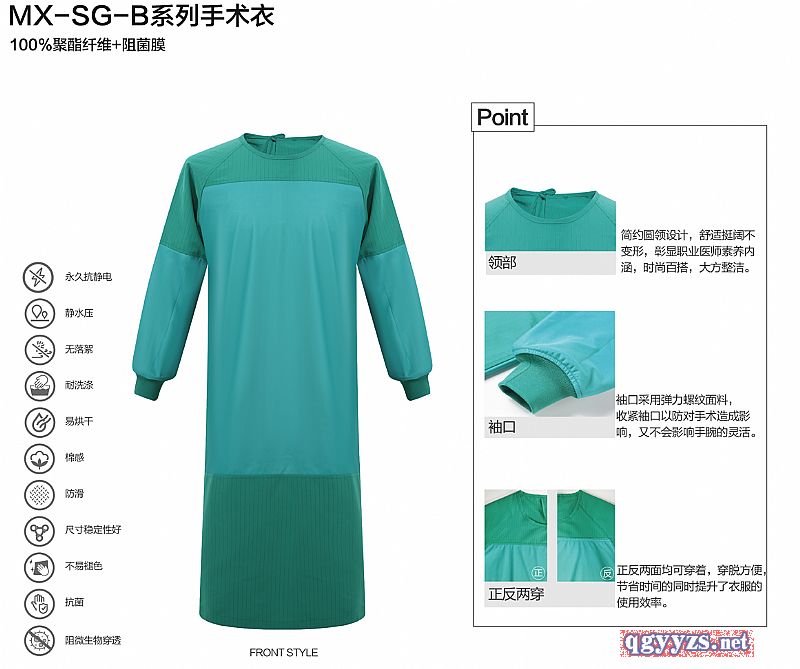 產(chǎn)品用途 手術(shù)室醫(yī)生職業(yè)防護和感染控制用品。防靜電,防油污,防水,紡落絮,阻菌,耐氯漂洗。