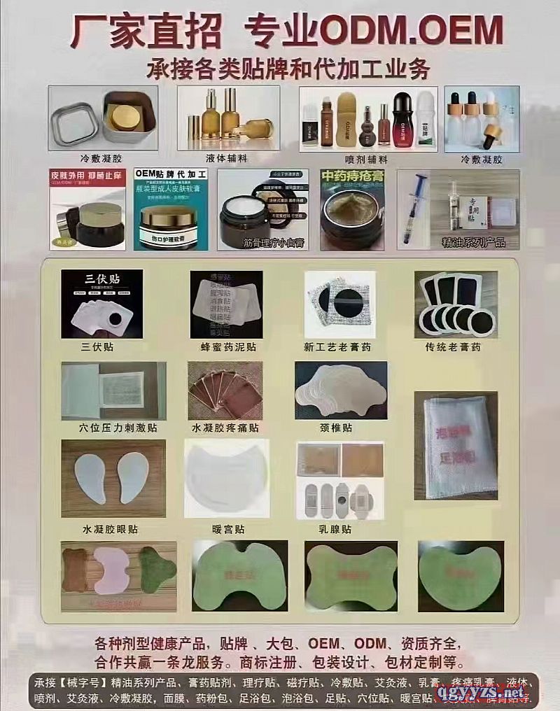 產品名稱: 膏藥貼劑凝膠噴劑貼牌代加工