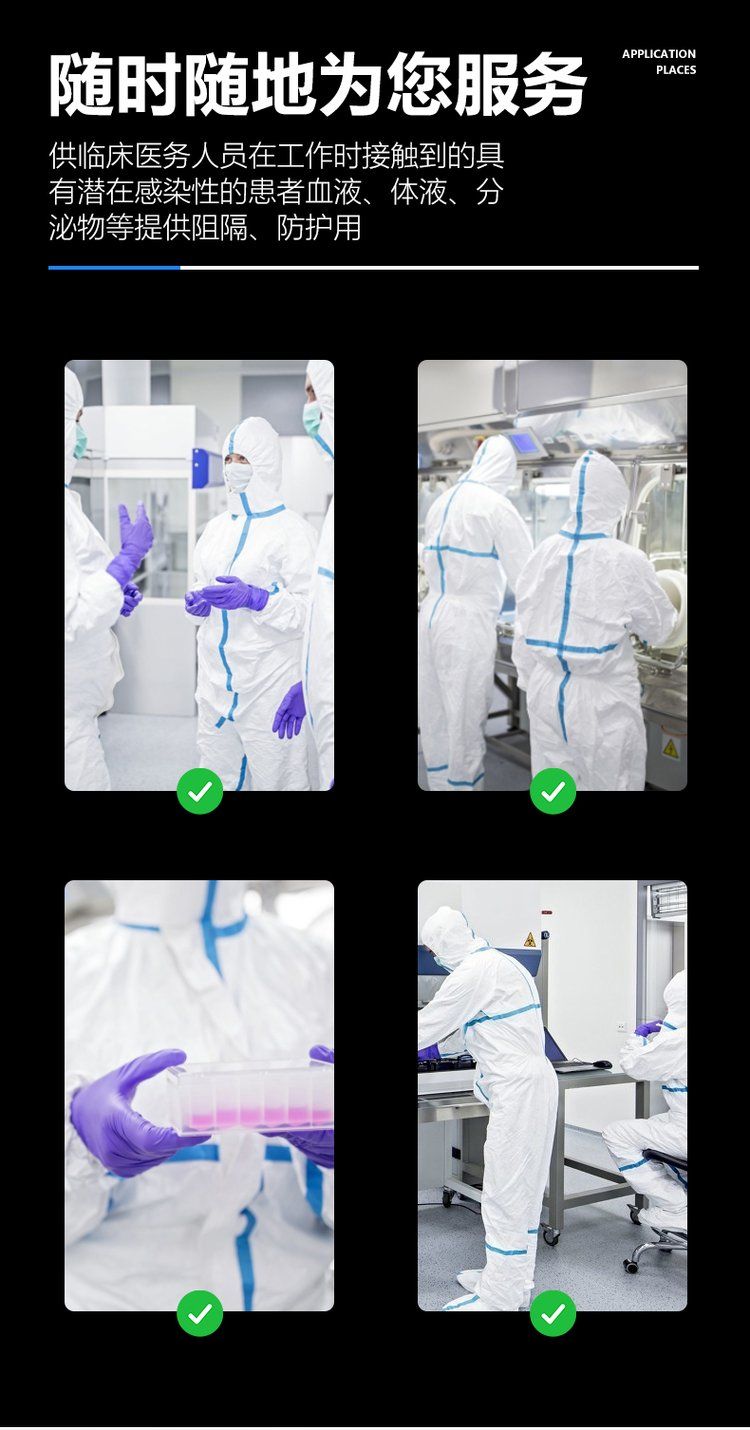 | 產(chǎn)品用途 | 供臨床醫(yī)務(wù)人員在工作時(shí)所接觸到的具有潛在感染性的患者血液、體液、分泌物等提供阻隔、防護(hù)用。 |
