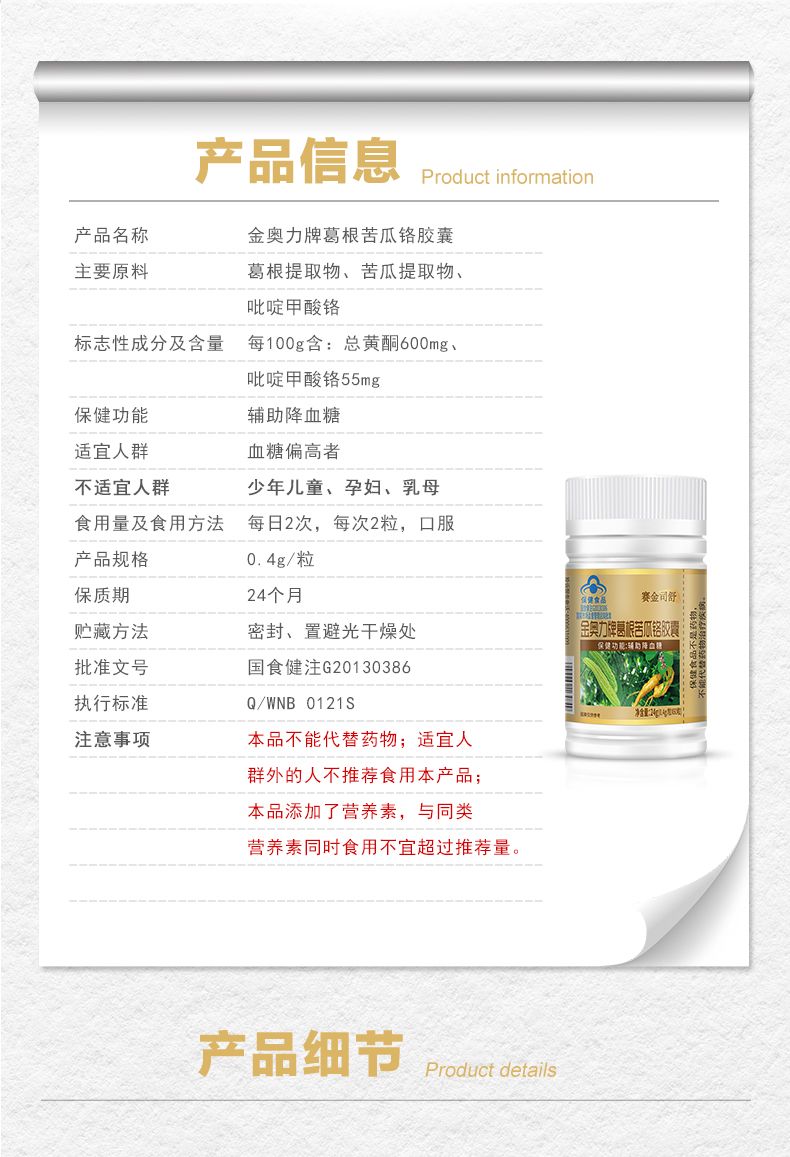 | 產(chǎn)品名稱 | 賽金司舒金奧力牌葛根苦瓜鉻膠囊 |