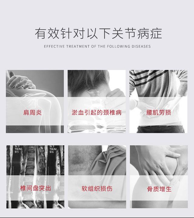 | 產(chǎn)品用途 | 適用于骨質(zhì)增生(骨刺)、頸椎病、腰椎病、腰椎間盤突出、坐骨神經(jīng)痛引起的麻木、酸沉、疼痛等癥。風濕性關節(jié)炎、肩周炎、骨性關節(jié)炎、扭挫傷及偏癱后遺癥引起的疼痛,屈伸不利等癥。 |