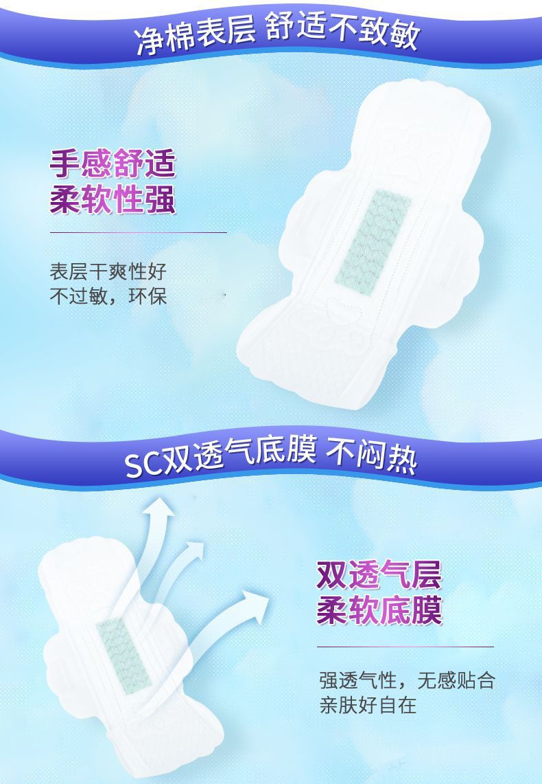 | 產(chǎn)品賣點 | 棉柔表層,專利復(fù)合吸水紙內(nèi)芯,舒適干爽,瞬吸防漏,透氣性高 |