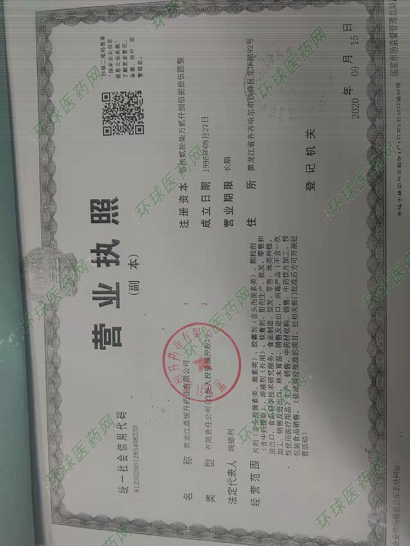 生產(chǎn)企業(yè): 黑龍江鼎恒升藥業(yè)有限公司