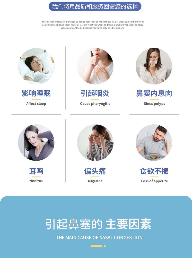| 產(chǎn)品用途 | 本品對于過敏性鼻炎、感冒引起的鼻塞、鼻息肉、鼻竇炎有**的輔助治療效果 |
