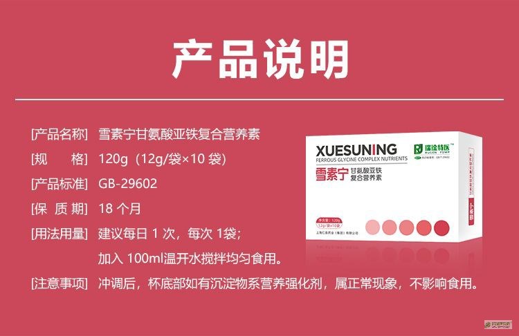 產(chǎn)品名稱: 雪素寧甘氨酸亞鐵復(fù)合營養(yǎng)素