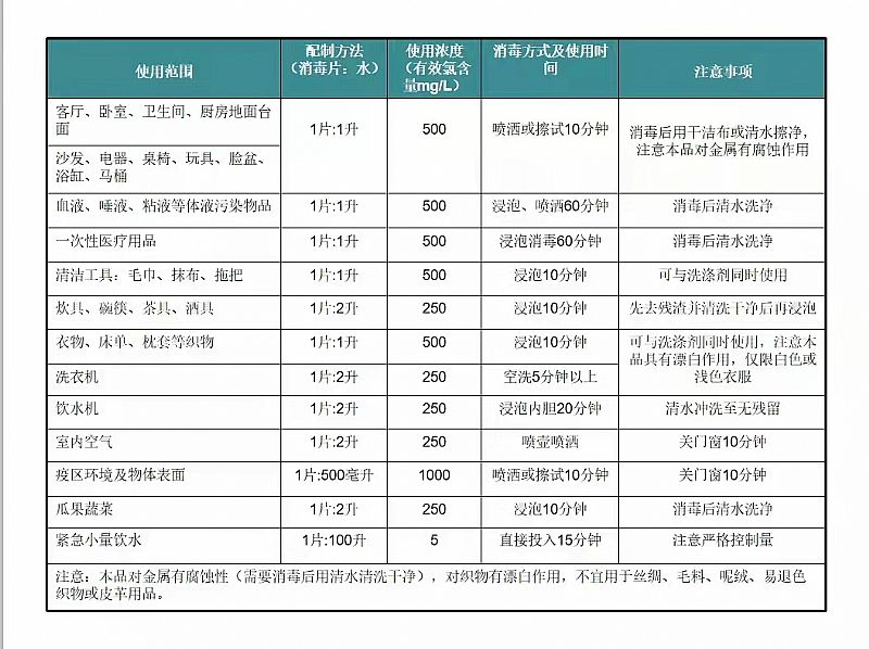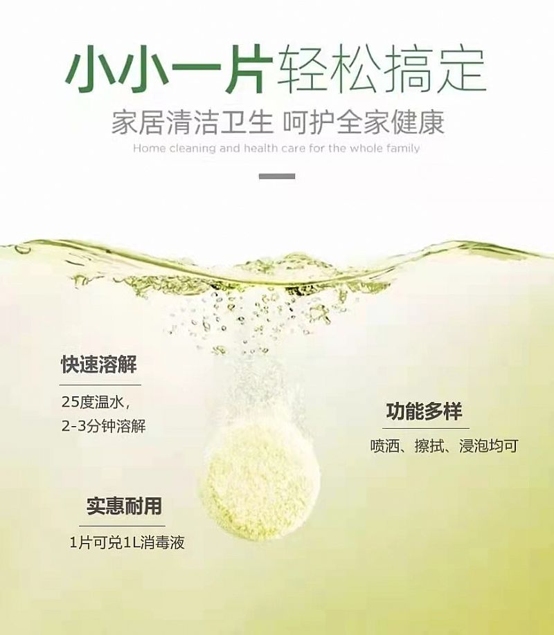 | 使用方法 | 第一步:取一片消毒片完全浸泡于水中第二步:具體不同情景使用方法如標(biāo)簽或說明書所述 |