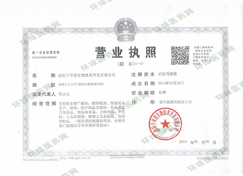 生產(chǎn)企業(yè): 洛陽千草堂生物技術開發(fā)有限公司