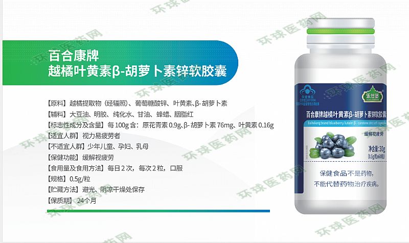 | 產(chǎn)品名稱 | 越橘葉黃素β-胡蘿卜素鋅軟膠囊 |